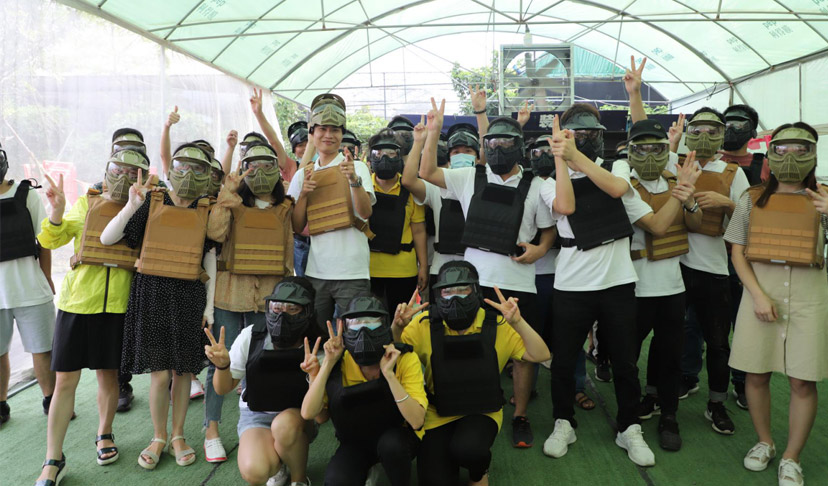 看,我们裕源欣的小伙伴们个个手持镭射枪、眼戴护目镜、头戴防弹头盔,在现实中上演CS大战,