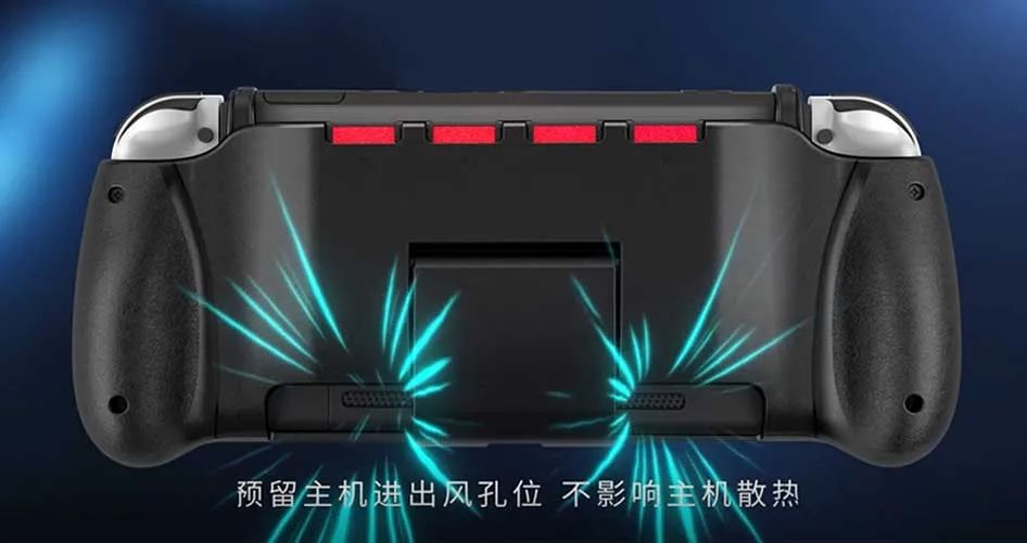 这款握把在Switch游戏主机的进风口及出风口处,都预留了排气风孔,不会影响主机散热。