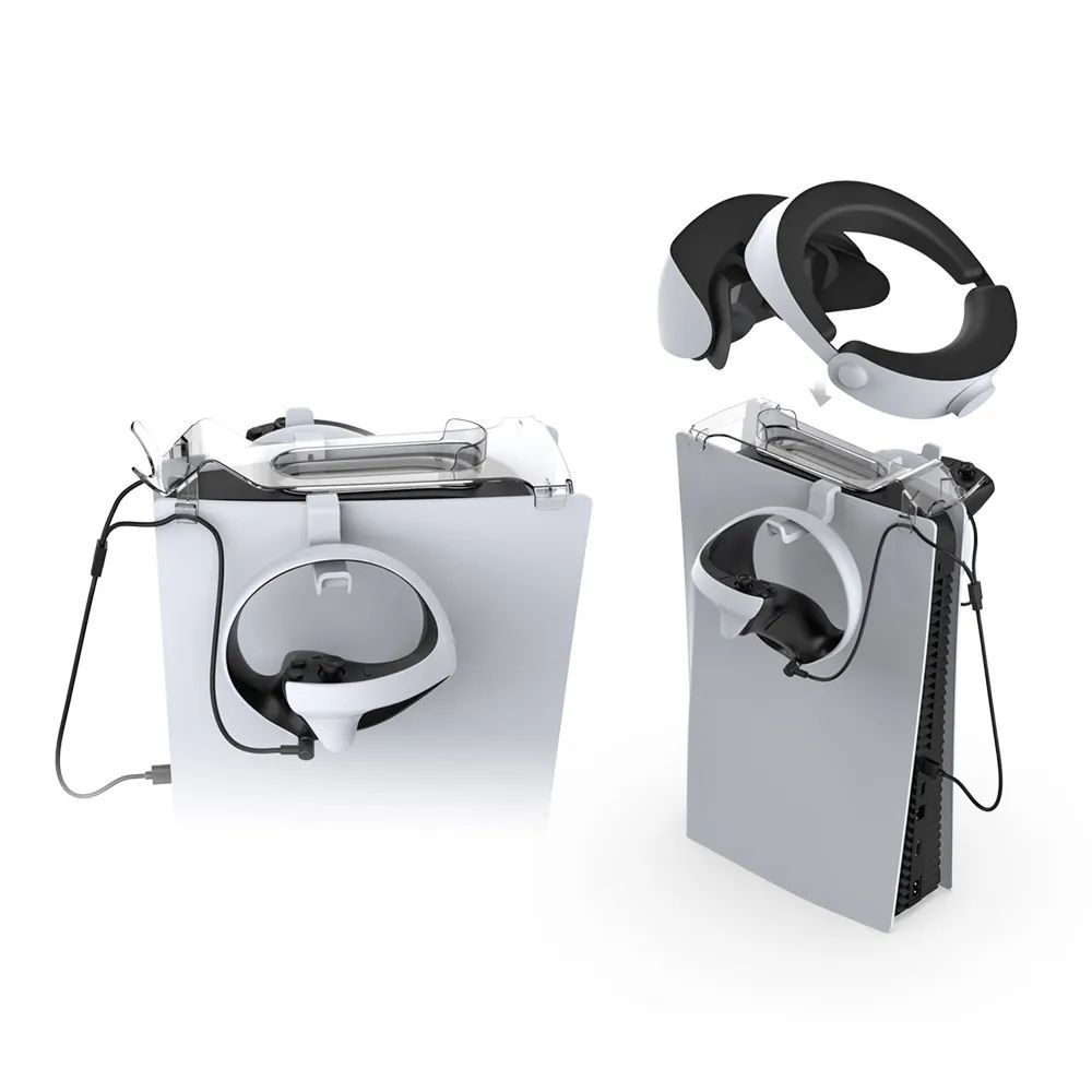 本品是专门为PS5 VR手柄开发设计的一款VR手柄充电底座,在给VR左、右手柄充电的同时,顶部托盘可放置VR眼镜,使其与PS5 VR眼镜、手柄完美融合。