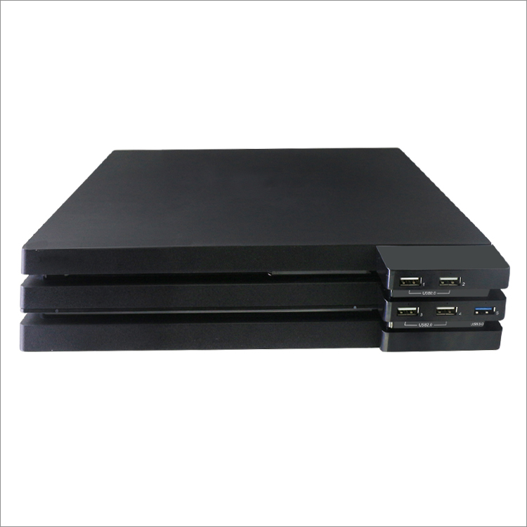 1. 材质:ABS壳料。 2. 4个USB2.0接口,1个3.0USB接口。 3. 适用于PS4 PRO 主机上的接口拓展,进一步可以满足玩家对于接口的需求。