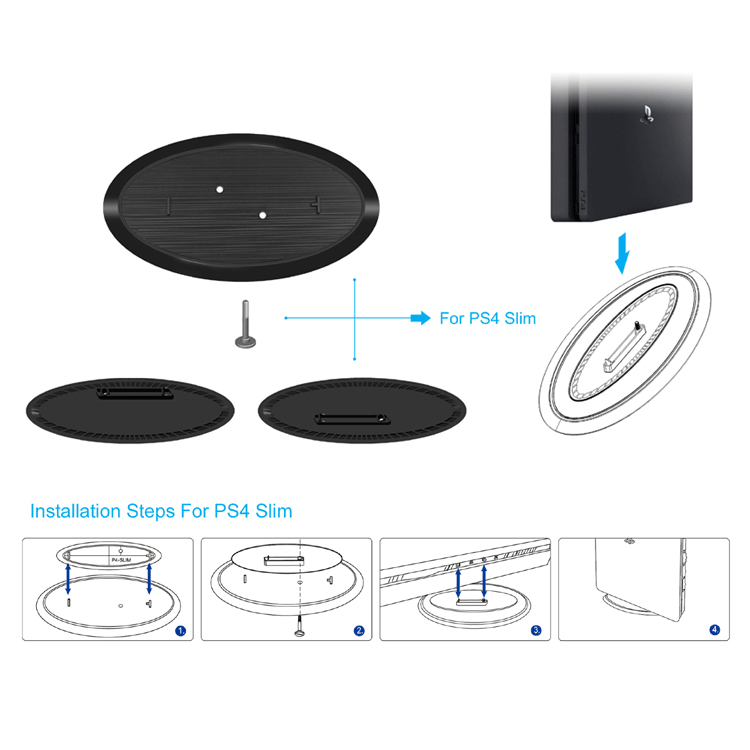 1. 适用于PS4 SLIM主机和PS4 PRO主机,盘式,带螺丝,防倒,稳固实用。 2. 该竖直支架让玩家可以竖直摆放PS4、Slim或Pro主机,从而方便玩家将它摆放在任何他们喜欢的地方。