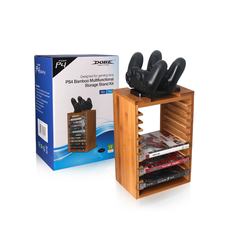 1. 放置PS4 / XboxONE S 游戏光盘盒。 2. 材料:竹制。 3. 可放12个游戏光盘盒。