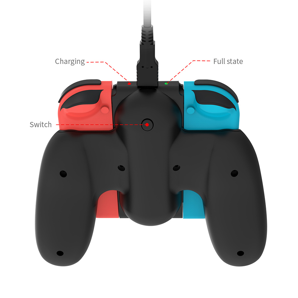 1. 可同时给两个Switch Joy-con 小手柄充电; 2. 输入电压/电流:5.0V / 1A; 3. 手柄充电时间:约3.5小时; 4. 本产品有红灯与绿灯两种充放电指示灯,简单易懂; 5. 多重电路保护:电压过充保护、电压过放保护、电流过载保护、短路保护、过温保护。