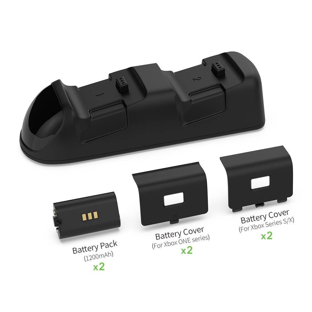 6.本双充可兼容Xbox one、Xbox Elite、Xbox one S/X、Xbox Series S/X,可以同时给2个手柄快速充电。