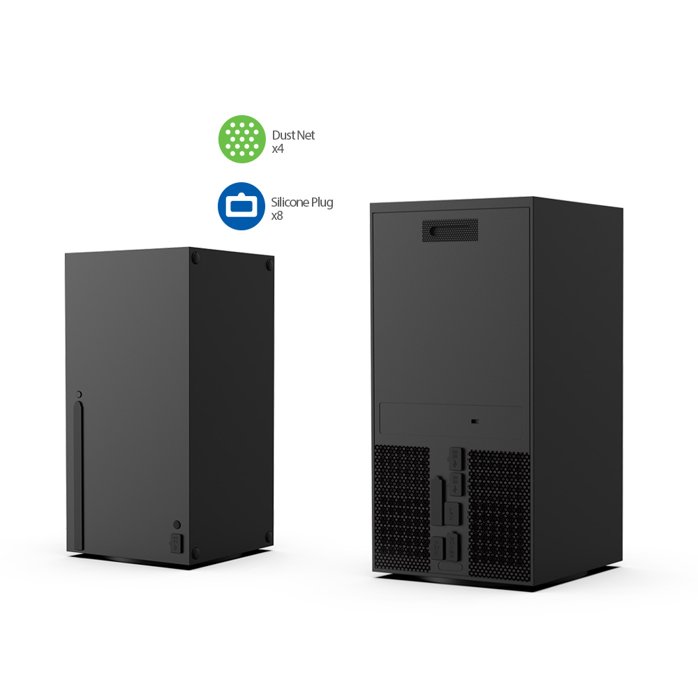 1:适用于XBOX Series X主机; 2:有效防护主机进入的粉尘,保护主机散热硬件及接口; 3:套装配置包含硅胶塞8PCS,防尘网4PCS;