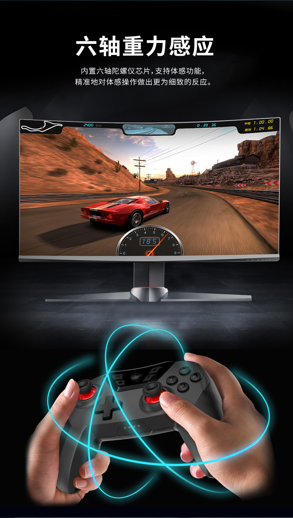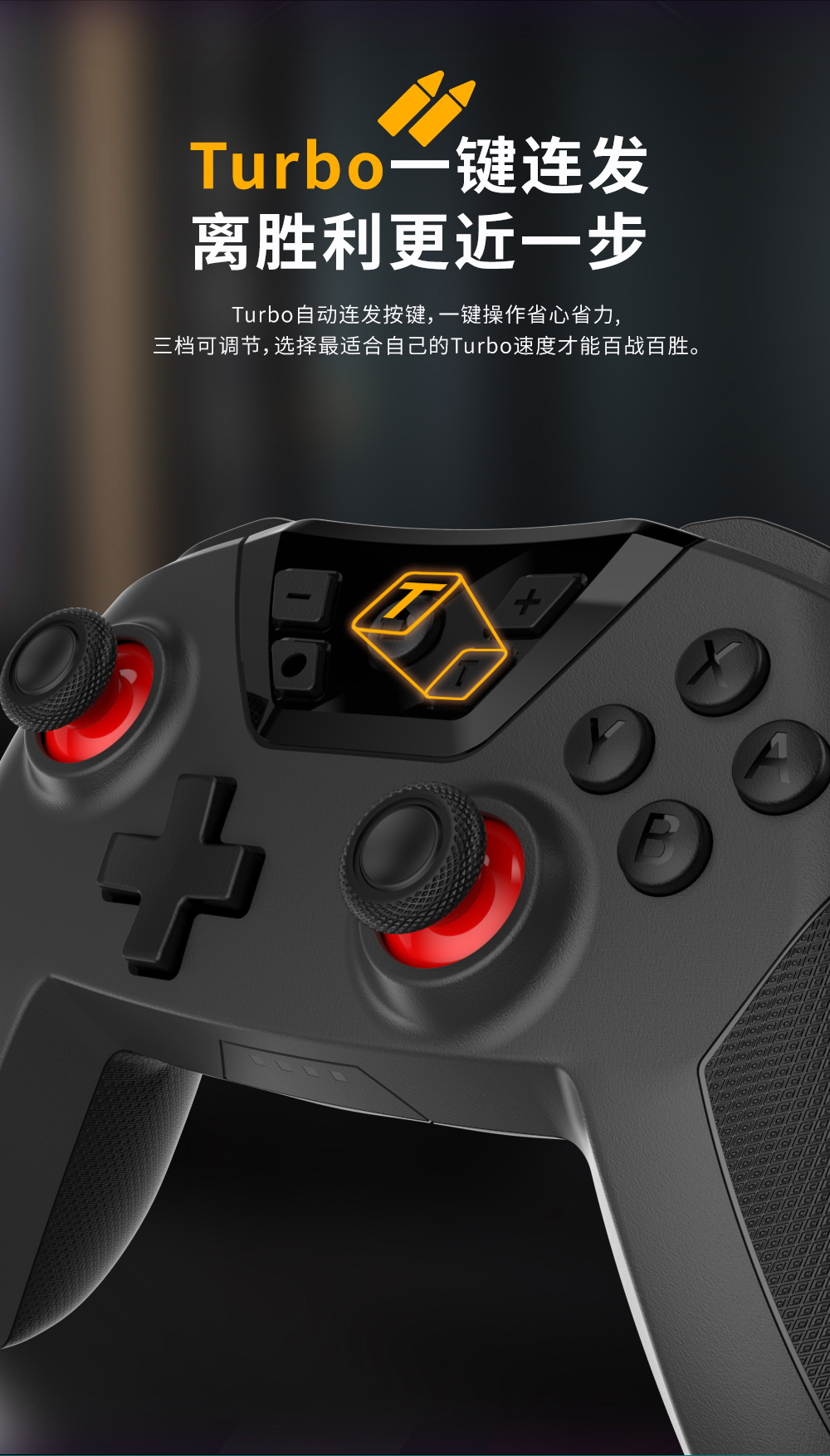 3. 设计有Turbo设置功能、可改变Turbo速率,有拍照键、陀螺仪重力感应等功能;