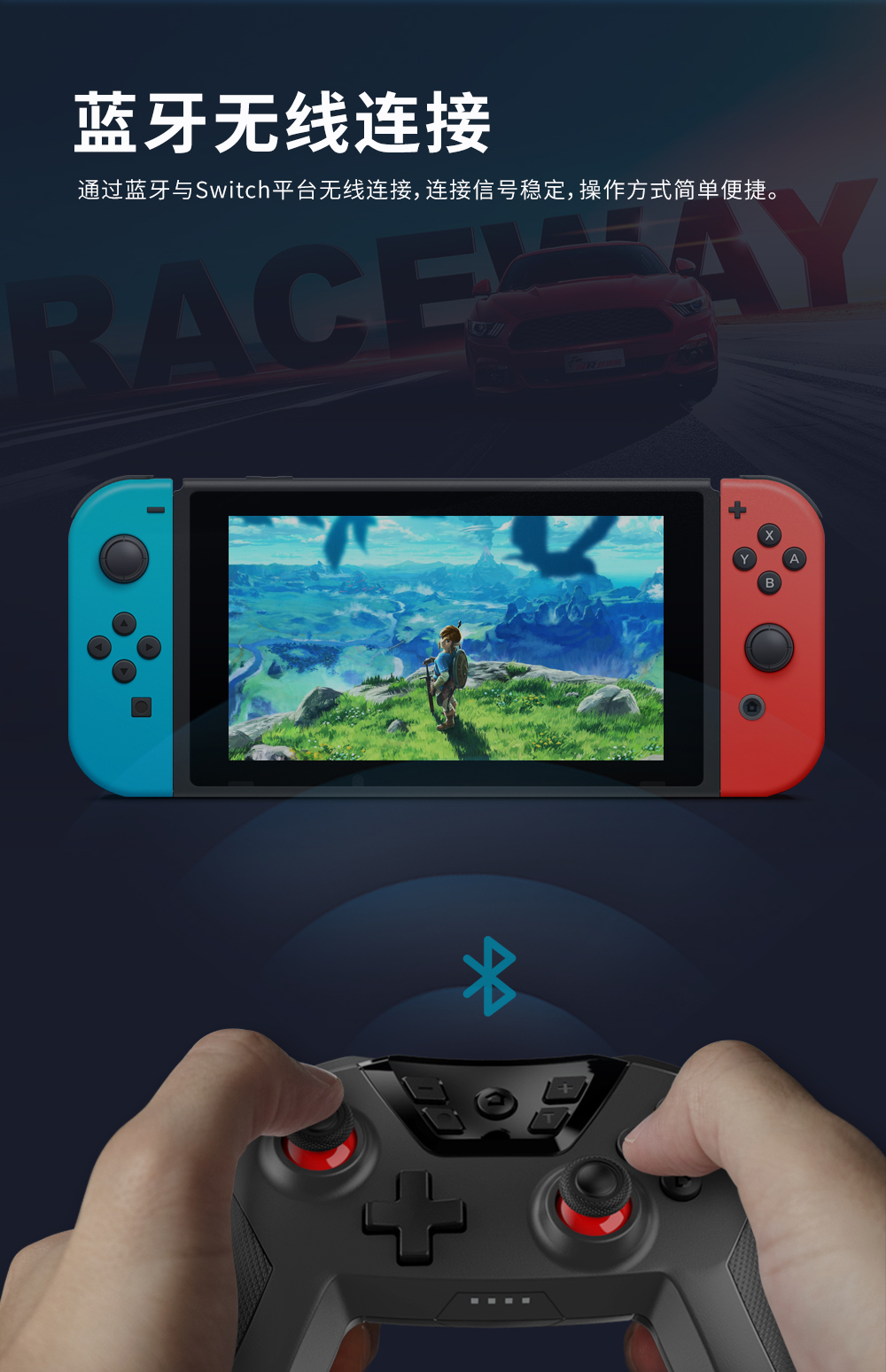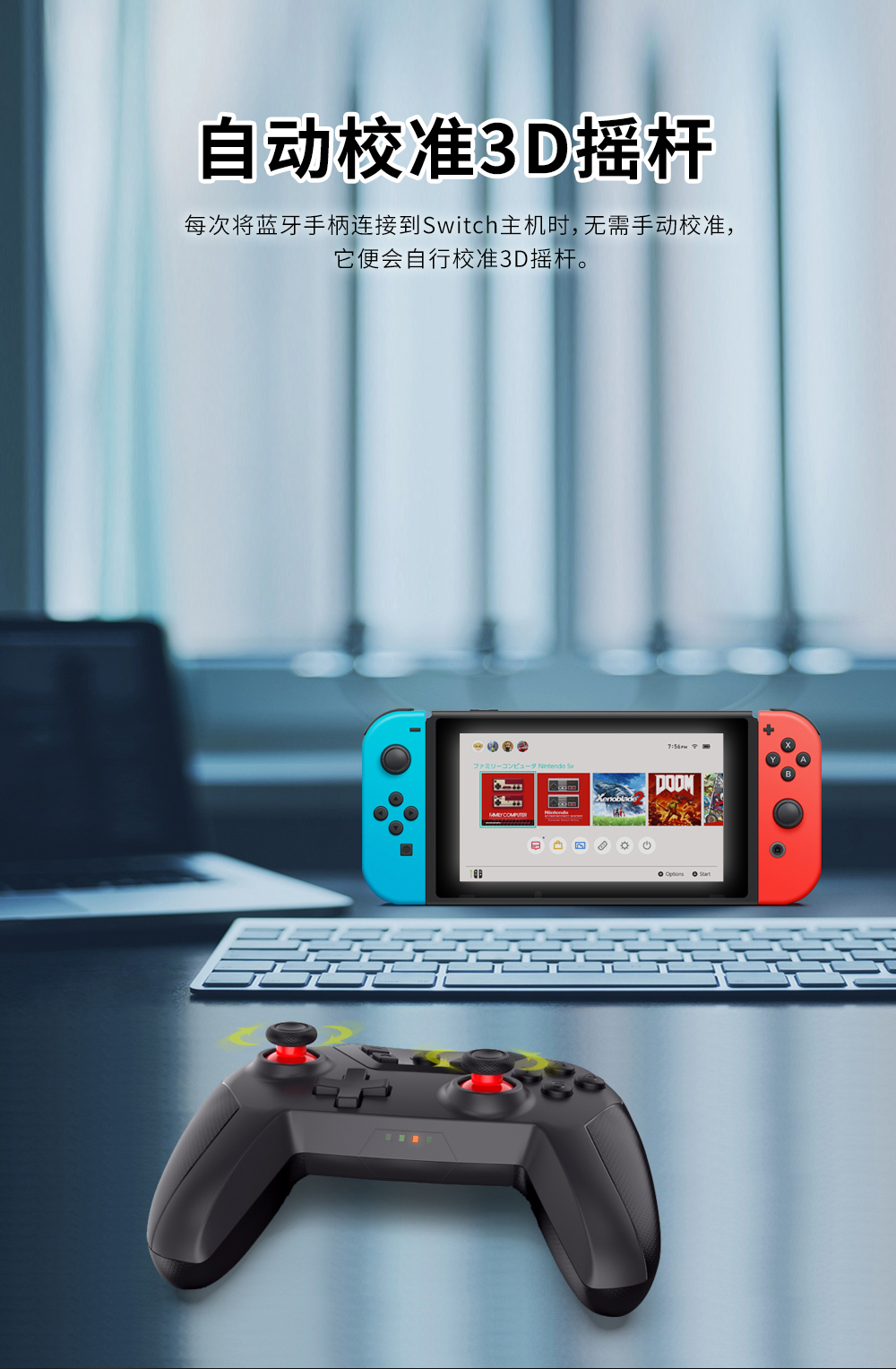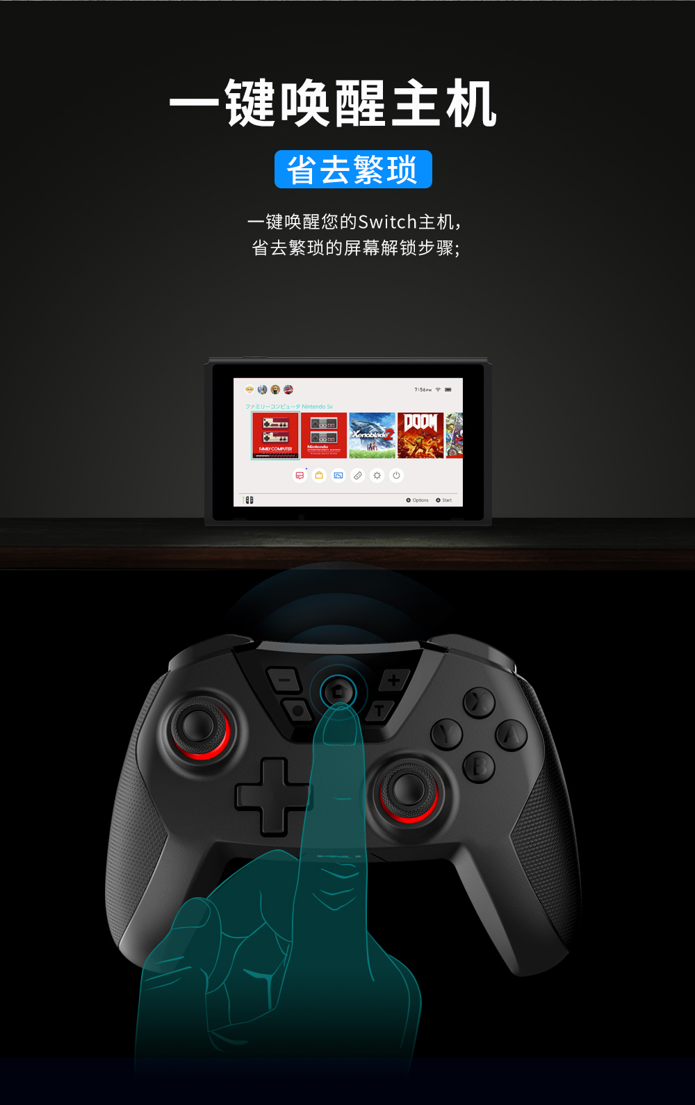 1. 支持蓝牙跟Switch主机平台无线连接;