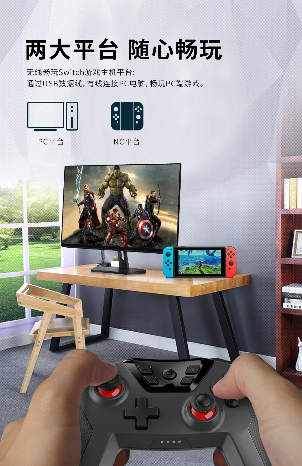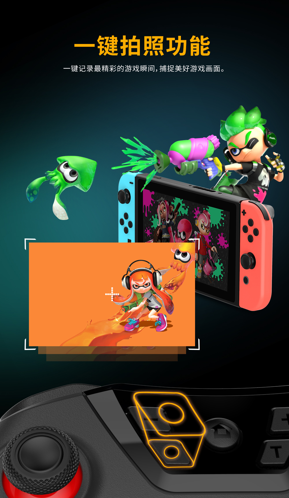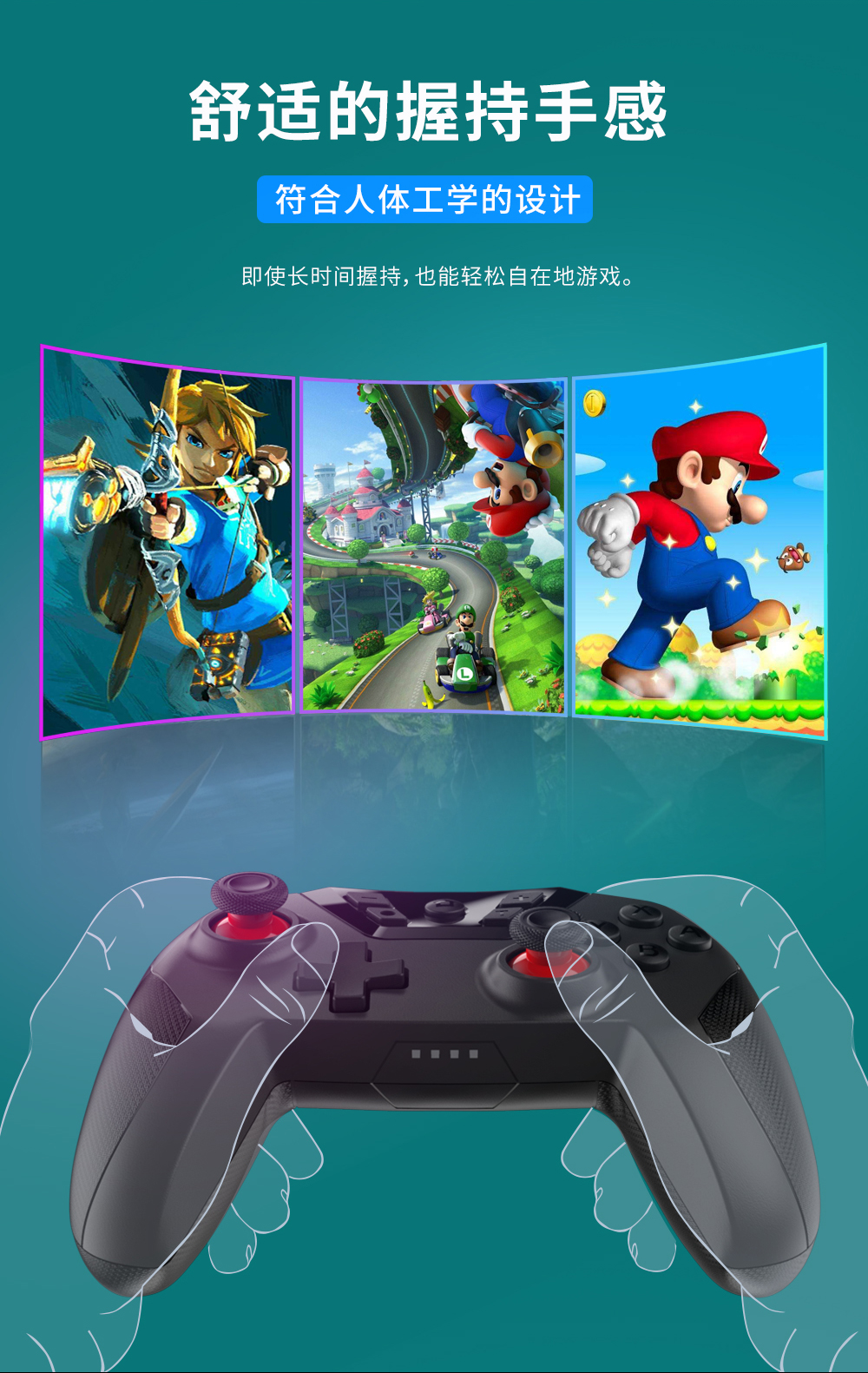 1. 支持蓝牙跟Switch主机平台无线连接;