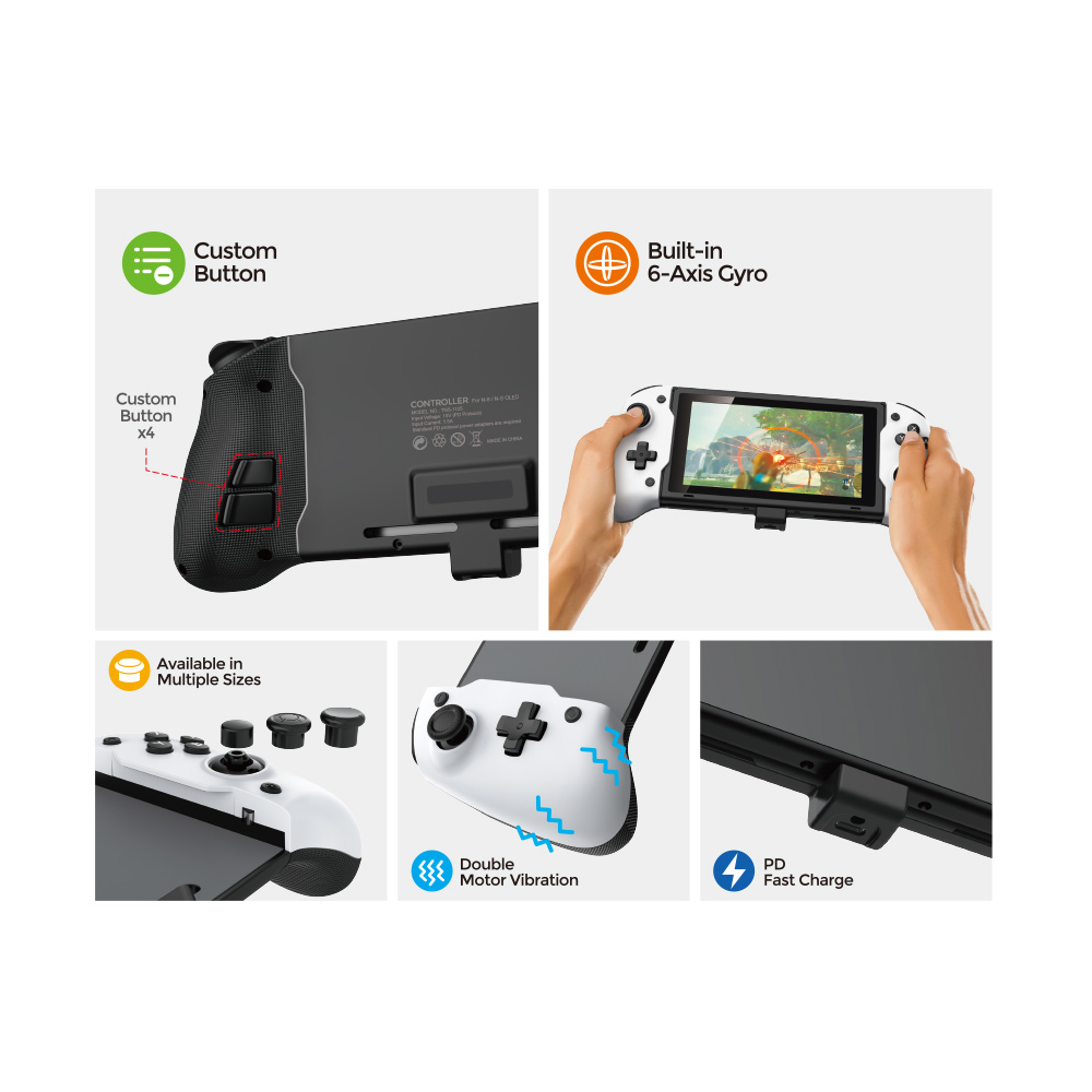 5, Adopt Type-C interface design, support Switch game host while charging while playing games, can be used Switch original power adapter or standard 15V PD protocol power adapter charging.
