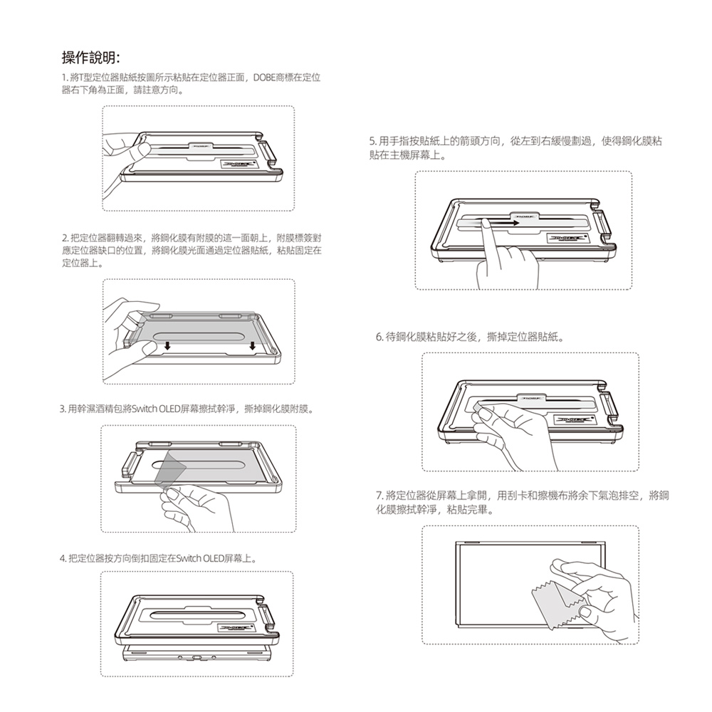 1, suitable for Switch OLED host, packaging includes: toughened film positioner *1, high-permeability toughened film *2, positioner stickers *2, wet and dry bags *2, dust removal stickers *2.