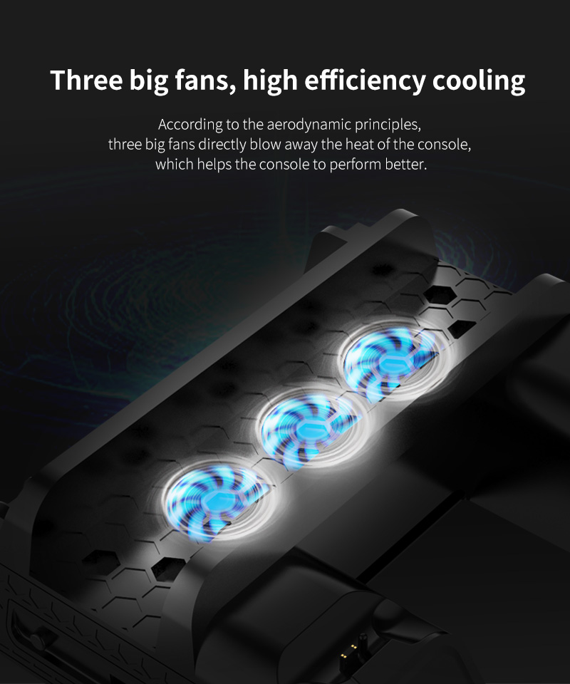 2,Cool down the temperature when the console is over heating and charge the controller when out of battery