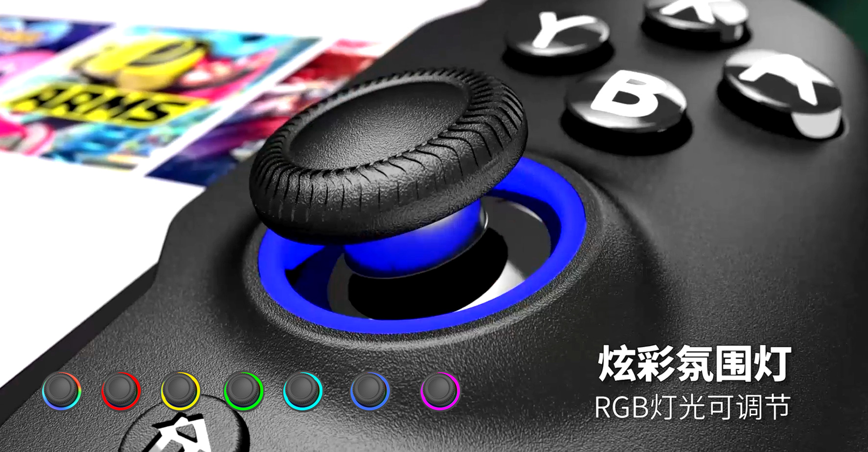 蛋壳三代直插手柄内置炫彩氛围灯光,RGB灯光可调节,红、黄、蓝、绿、紫、橙、白、幻、彩等多种颜色循环变化。灯光有呼吸模式,包括RGB七色循环呼吸和LED幻彩呼吸,让你在游戏过程中享受视觉盛宴。同时,氛围灯光亮度可调,可根据个人喜好进行设置。
