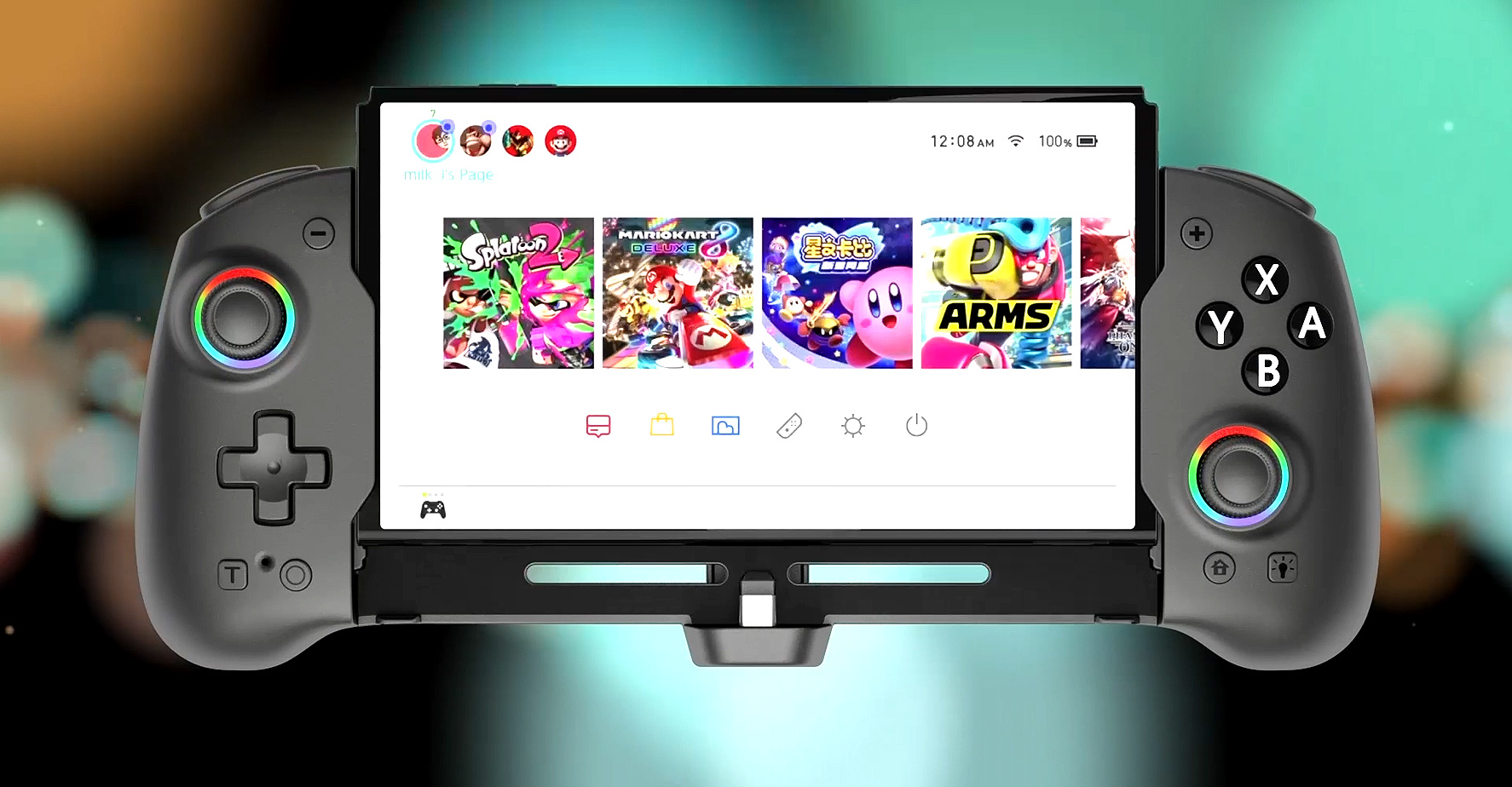 手柄配置HDMI功能,可将Switch游戏机画面投屏至电视、投影等显示设备。使用视频输出功能时,可将手柄背部的支承架展开,将手柄与主机放置于桌面,享受更加宽广舒适的游戏视觉体验。