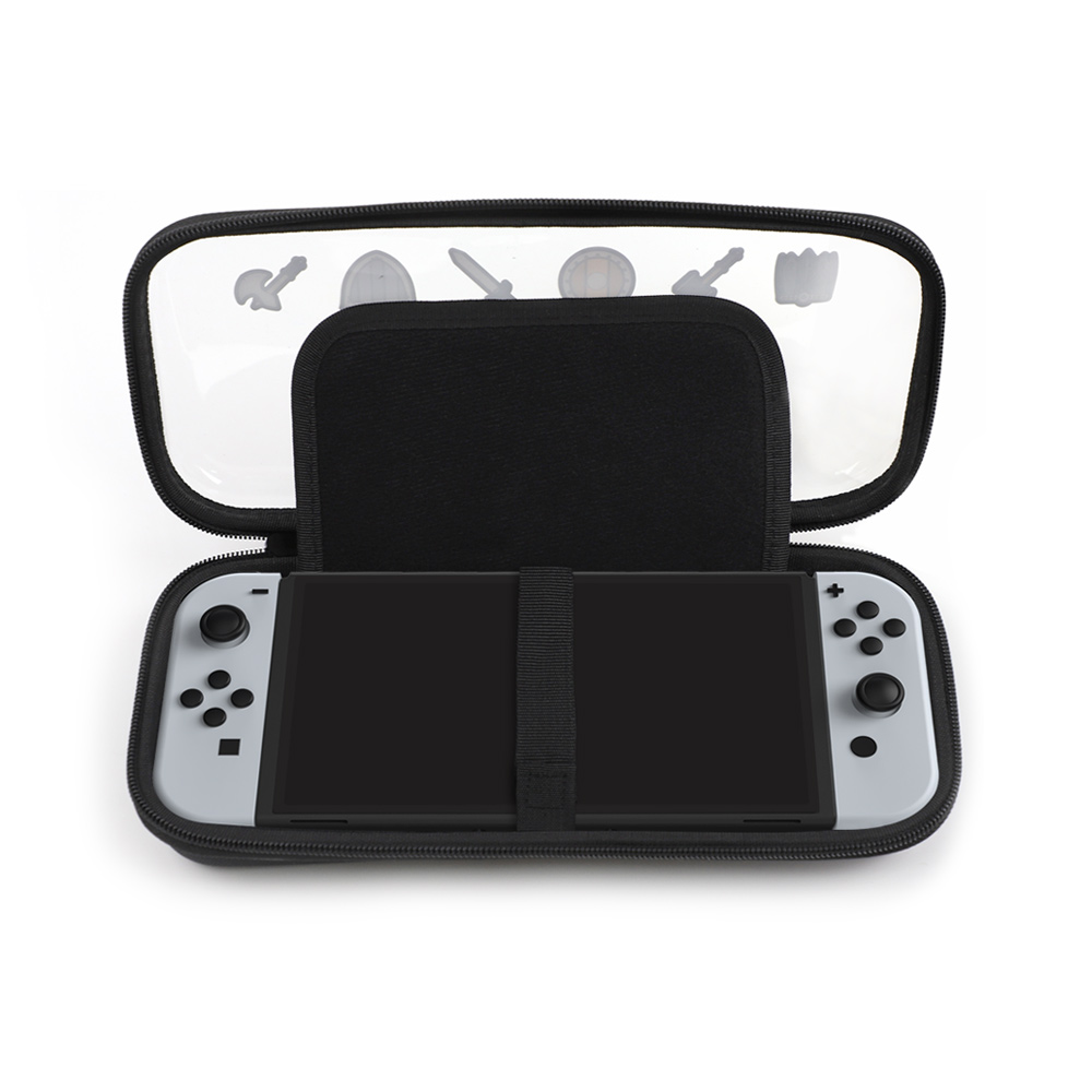 1、可收纳Switch OLED主机,10张游戏卡与充电设备;