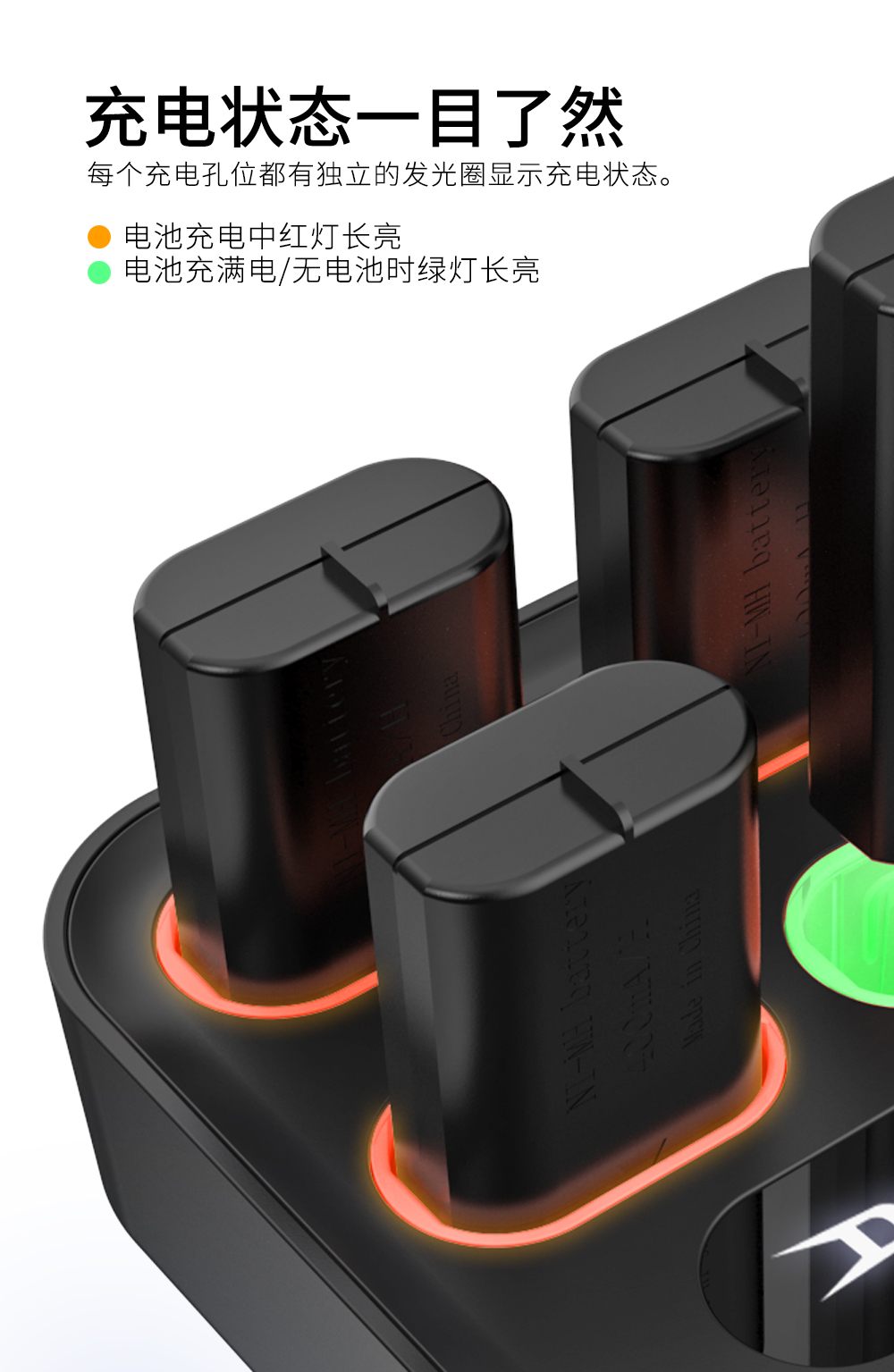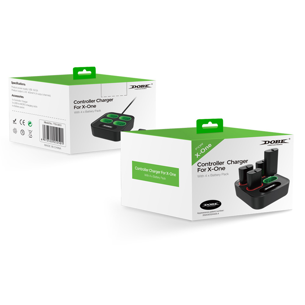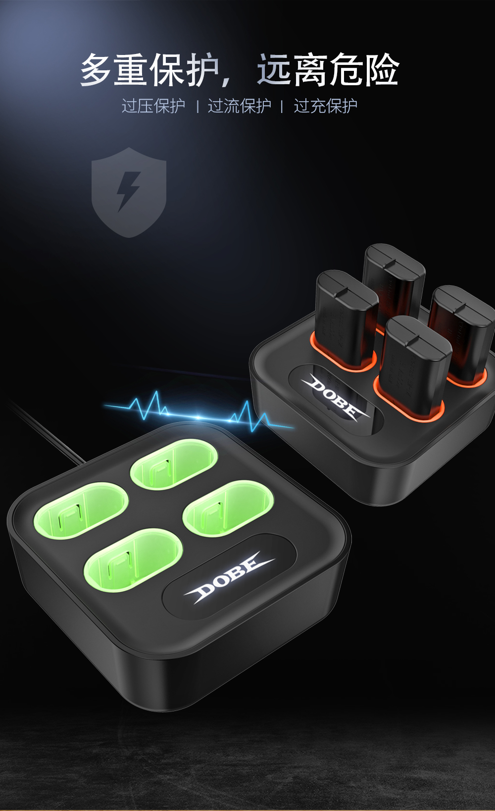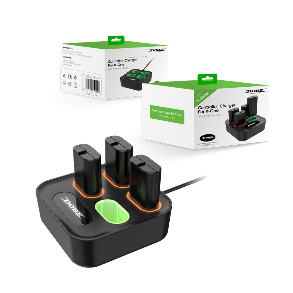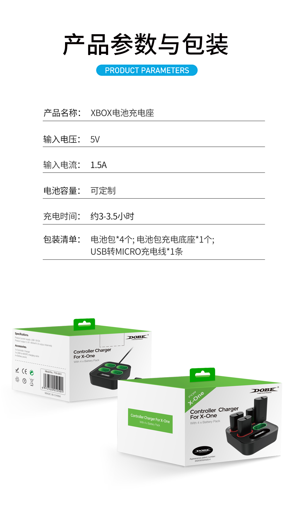 1. 可同时充4个XboxOne电池包,让游戏过程中电池包能量满满;
