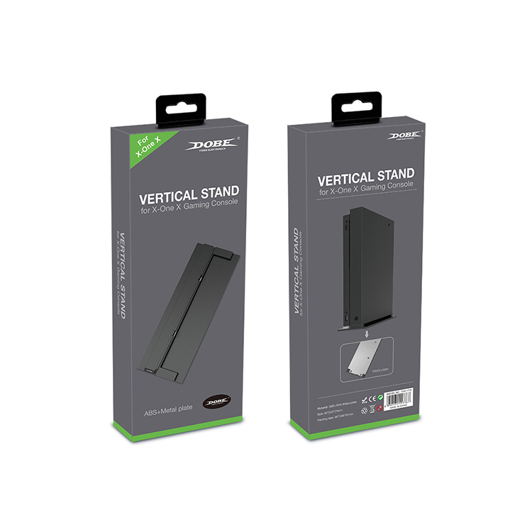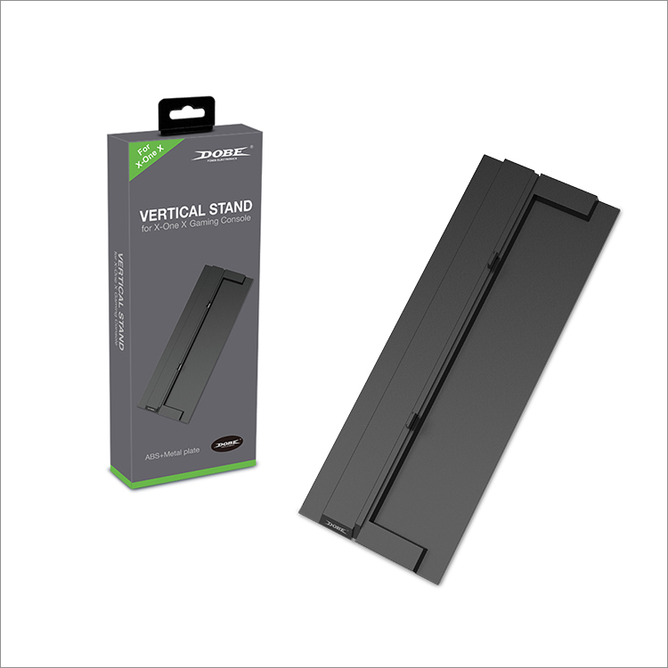 1. 适用范围:XBOX ONE X主机,底座底部有一块金属片,增加支架的稳定性。 2. 方便主机直立放置,便于散热,主机底部有预留出风口。 3. 产品材质: ABS+五金。
