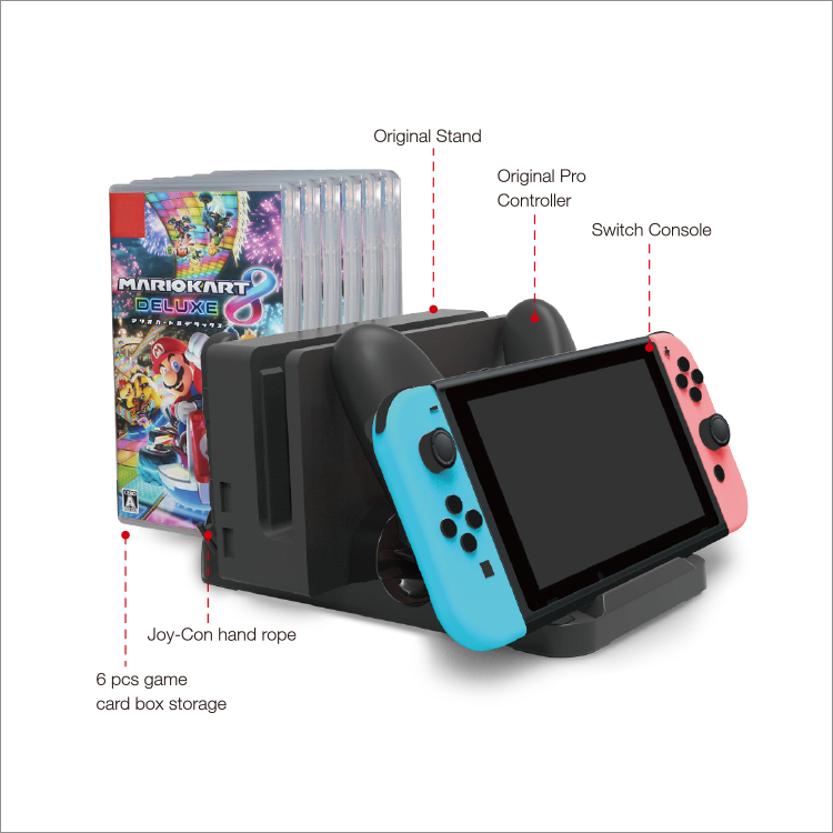 2. 可收纳Switch底座,可同时收纳6个游戏卡盒。