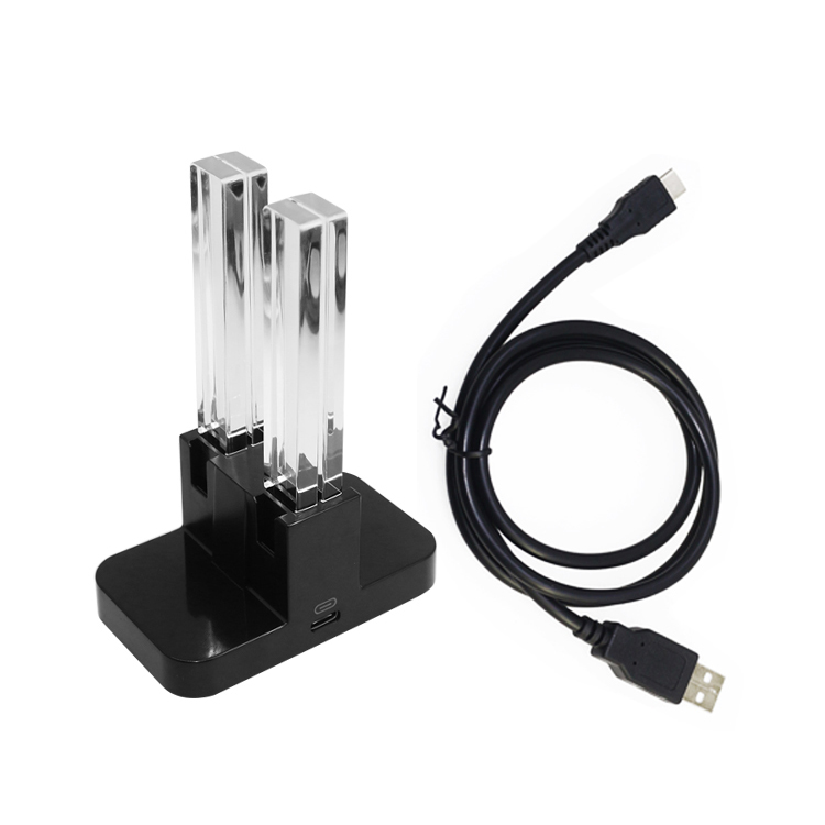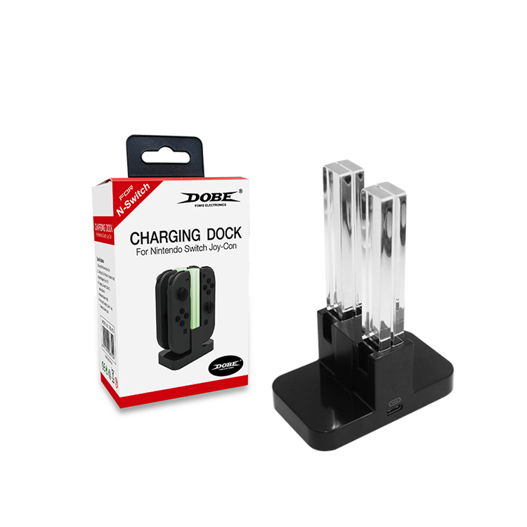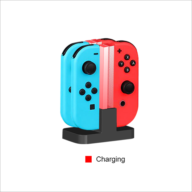 1. 炫彩亚克力灯光柱,充电时红灯,充满或者接电源空载时绿灯; 2. 可同时给4个Switch小手柄充电,充电端口不分方向; 3. Type-C接口供电,支持原装充电器。