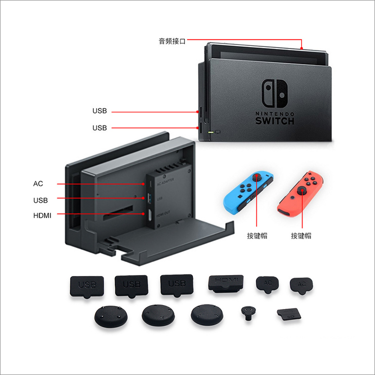 Switch小手柄硅胶套(含胶塞)左右小手柄各一个硅胶套(左蓝色,右红色),另外含胶塞套装。