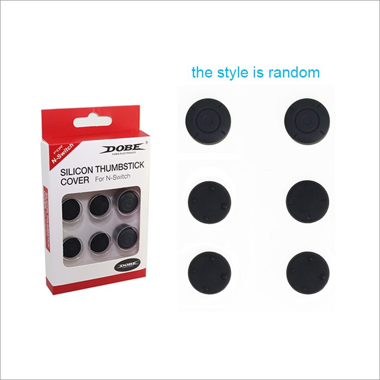 Switch 摇杆硅胶帽总共6个硅胶帽,都是黑色,款式随机搭配, 其中4个小的硅胶帽,2个大的硅胶帽。