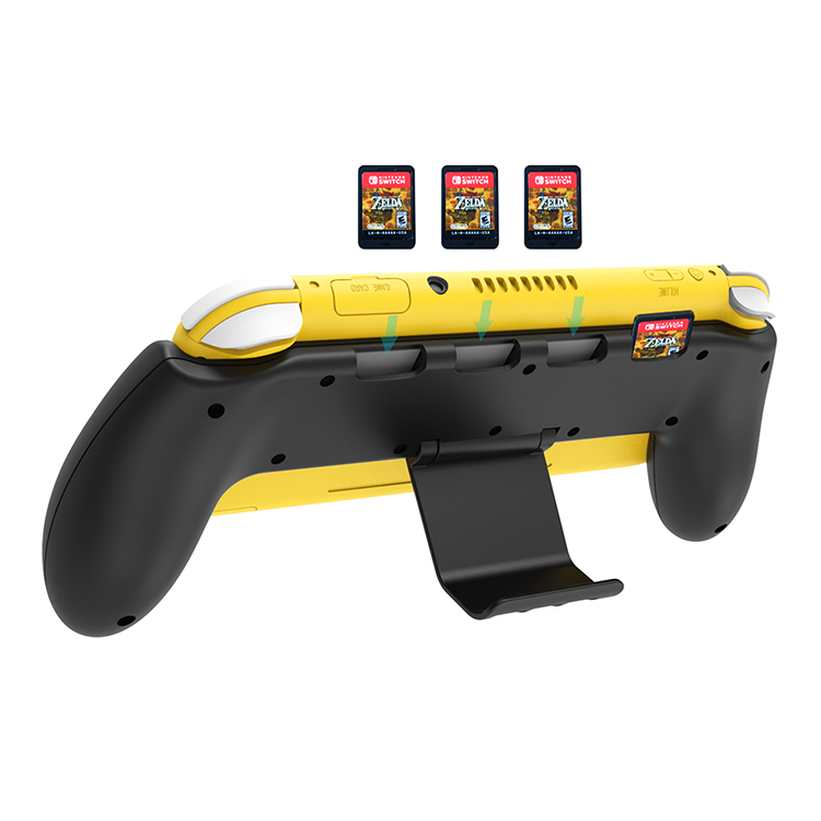 1. 适用于 Switch Lite 主机 2. ABS料,黑色 3. 产品顶部可插入放置4张Switch 游戏卡 4. 外观专利:2019303226003