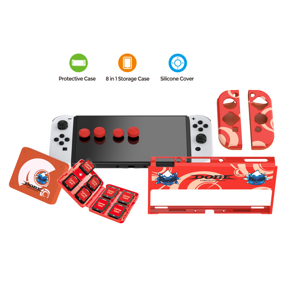 The blue/red Switch OLED case comes in two colors. The set includes: