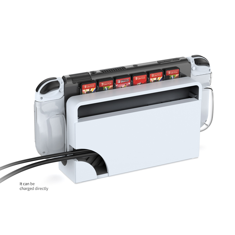 1. It is suitable for Switch OLED game console, PC transparent protective cover, which can be inserted into the original base for charging;