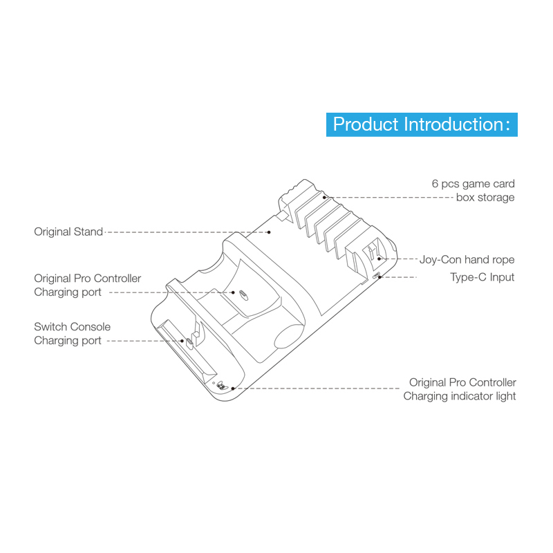 2,Multi-functional design,built in 1 switch console and 6 game card storage slots.Charge your switch Pro controller and Switch console at the same time.