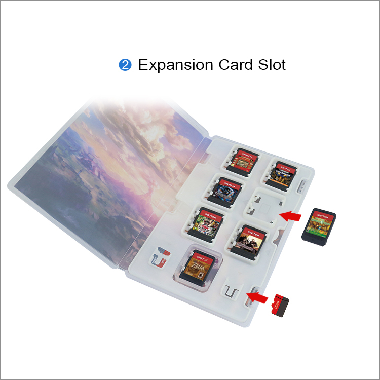 Switch Protective Kit, include 4 products: 1. EVA bag 1 pcs, 2. Rubber plug 1 set, 3. Toughened glass film 1 pcs, 4. Expansion card slot 1 pcs.