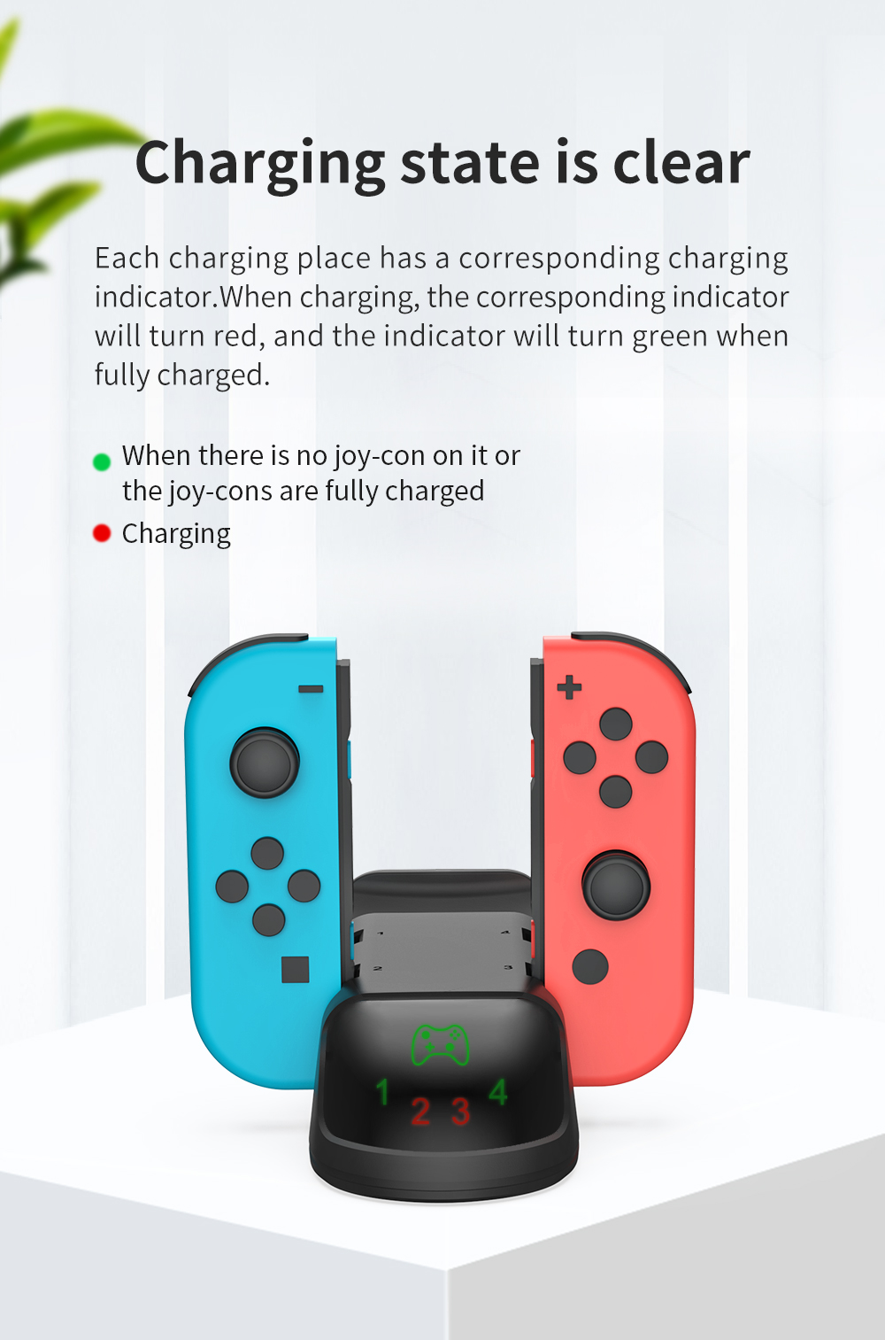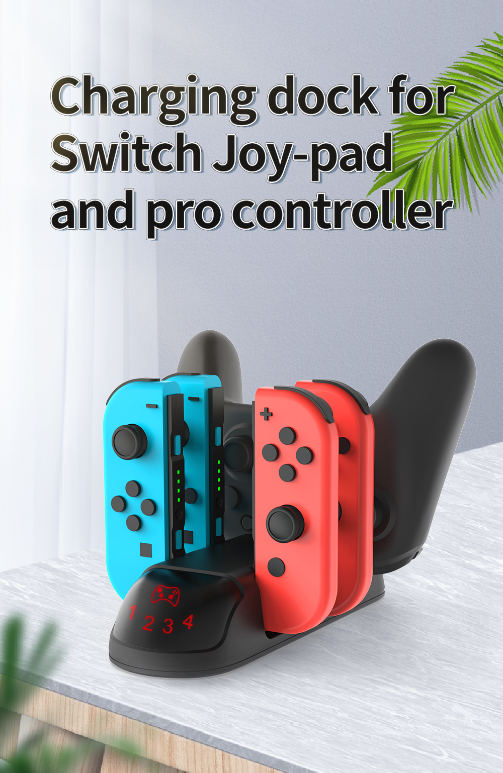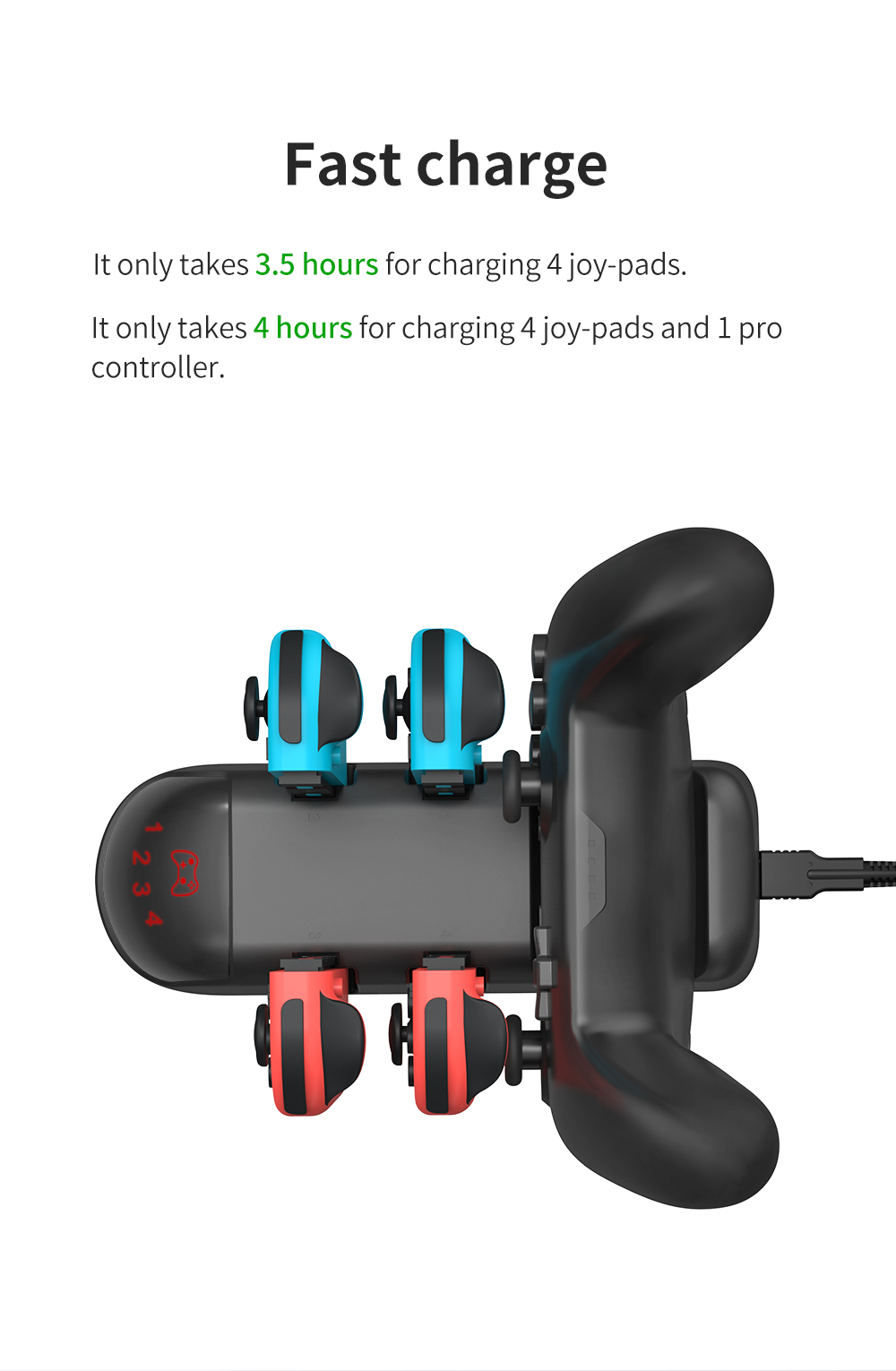 2. Four small controllers of Switch(JOY-Con)L/R and one PRO controller can be charged simultaneously;