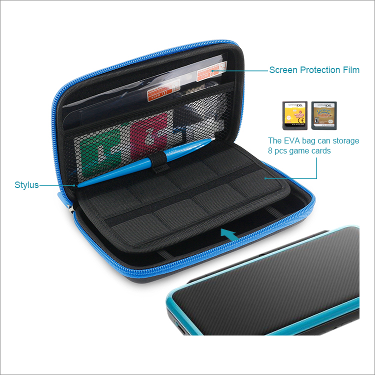 3,3 in1 super value combo,EVA storage bag & Screen protective film & stylus,full protection for your New Nintendo 2DS XL/LL console,the EVA storage bag also available for 8 game cards storage.